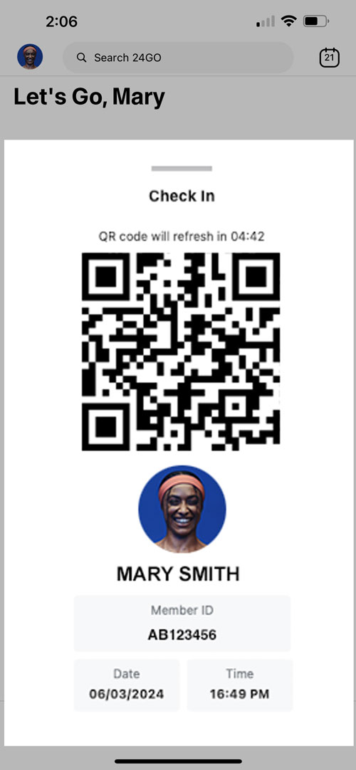 Sync 24GO with Apple and Android Watches to track and record workouts, check-in to the club and more.
